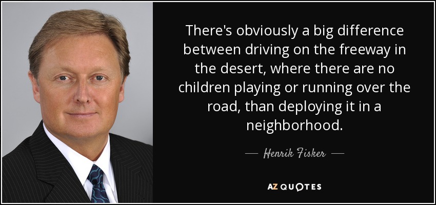 There's obviously a big difference between driving on the freeway in the desert, where there are no children playing or running over the road, than deploying it in a neighborhood.