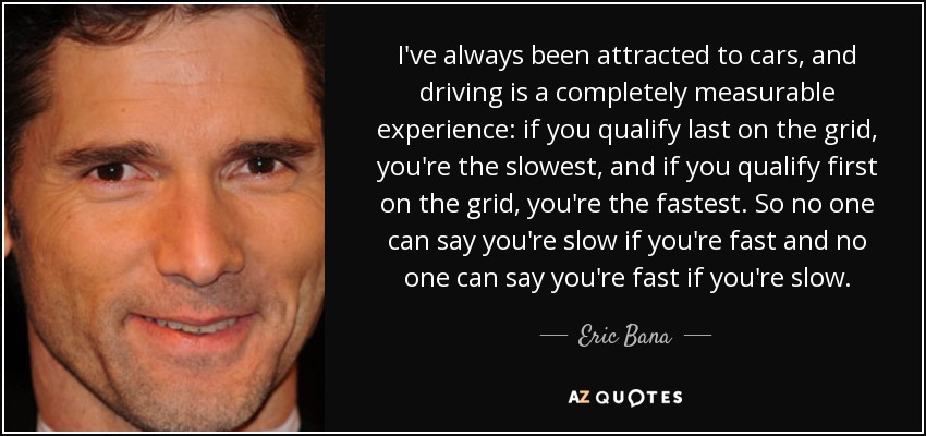 I've always been attracted to cars, and driving is a completely measurable experience: if you qualify last on the grid, you're the slowest, and if you qualify first on the grid, you're the fastest. So no one can say you're slow if you're fast and no one can say you're fast if you're slow.