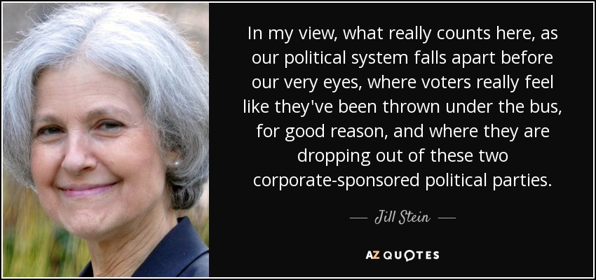 In my view, what really counts here, as our political system falls apart before our very eyes, where voters really feel like they've been thrown under the bus, for good reason, and where they are dropping out of these two corporate-sponsored political parties.