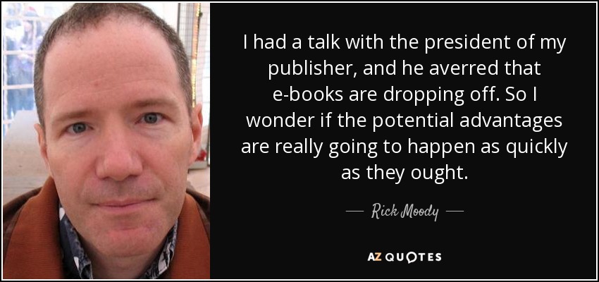 I had a talk with the president of my publisher, and he averred that e-books are dropping off . So I wonder if the potential advantages are really going to happen as quickly as they ought.