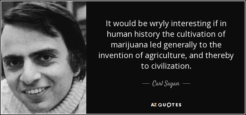 It would be wryly interesting if in human history the cultivation of marijuana led generally to the invention of agriculture, and thereby to civilization.