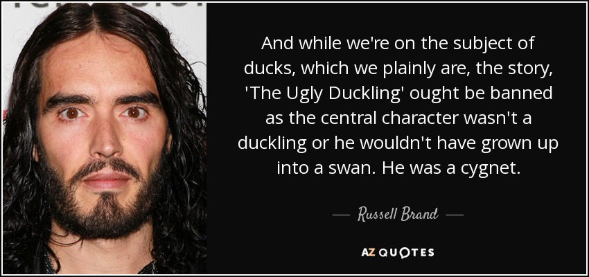And while we're on the subject of ducks, which we plainly are, the story, 'The Ugly Duckling' ought be banned as the central character wasn't a duckling or he wouldn't have grown up into a swan. He was a cygnet.