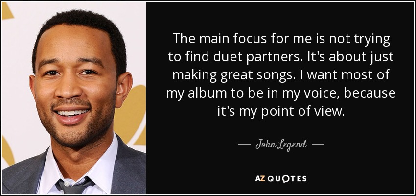 The main focus for me is not trying to find duet partners. It's about just making great songs. I want most of my album to be in my voice, because it's my point of view.