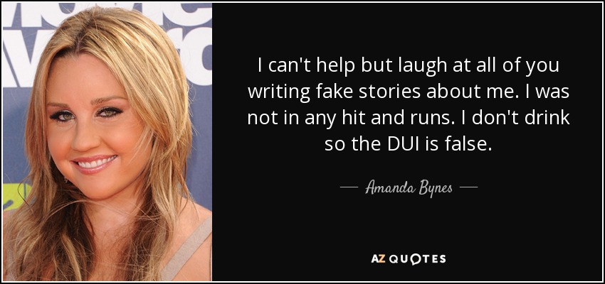 I can't help but laugh at all of you writing fake stories about me. I was not in any hit and runs. I don't drink so the DUI is false.