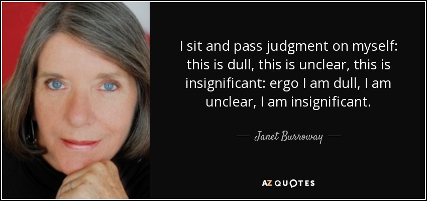 I sit and pass judgment on myself: this is dull, this is unclear, this is insignificant: ergo I am dull, I am unclear, I am insignificant.