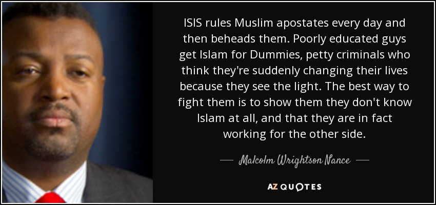 ISIS rules Muslim apostates every day and then beheads them. Poorly educated guys get Islam for Dummies, petty criminals who think they're suddenly changing their lives because they see the light. The best way to fight them is to show them they don't know Islam at all, and that they are in fact working for the other side.