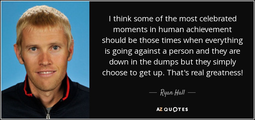 I think some of the most celebrated moments in human achievement should be those times when everything is going against a person and they are down in the dumps but they simply choose to get up. That's real greatness!