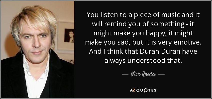 You listen to a piece of music and it will remind you of something - it might make you happy, it might make you sad, but it is very emotive. And I think that Duran Duran have always understood that.