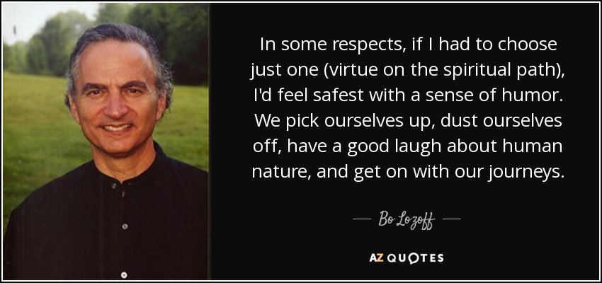 In some respects, if I had to choose just one (virtue on the spiritual path), I'd feel safest with a sense of humor. We pick ourselves up, dust ourselves off, have a good laugh about human nature, and get on with our journeys.