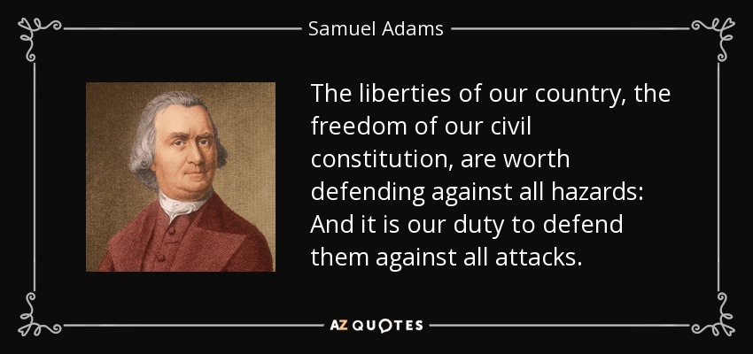 The liberties of our country, the freedom of our civil constitution, are worth defending against all hazards: And it is our duty to defend them against all attacks.