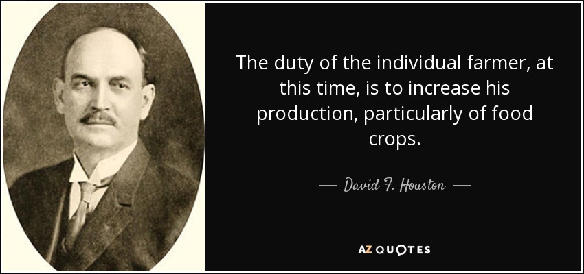 The duty of the individual farmer, at this time, is to increase his production, particularly of food crops.