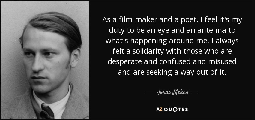 As a film-maker and a poet, I feel it's my duty to be an eye and an antenna to what's happening around me. I always felt a solidarity with those who are desperate and confused and misused and are seeking a way out of it.