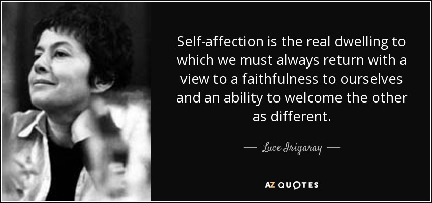 Self-affection is the real dwelling to which we must always return with a view to a faithfulness to ourselves and an ability to welcome the other as different.