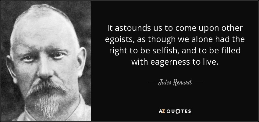 It astounds us to come upon other egoists, as though we alone had the right to be selfish, and to be filled with eagerness to live.