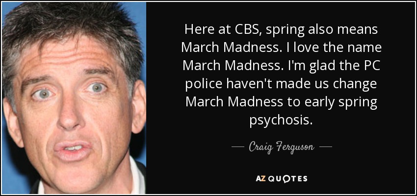 Here at CBS, spring also means March Madness. I love the name March Madness. I'm glad the PC police haven't made us change March Madness to early spring psychosis.