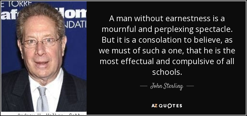 A man without earnestness is a mournful and perplexing spectacle. But it is a consolation to believe, as we must of such a one, that he is the most effectual and compulsive of all schools.