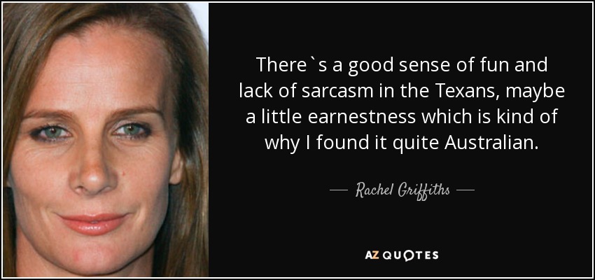 There`s a good sense of fun and lack of sarcasm in the Texans, maybe a little earnestness which is kind of why I found it quite Australian.