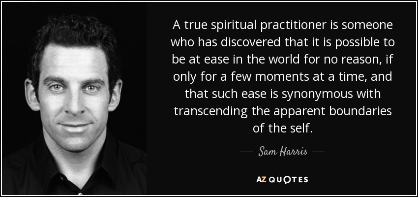 A true spiritual practitioner is someone who has discovered that it is possible to be at ease in the world for no reason, if only for a few moments at a time, and that such ease is synonymous with transcending the apparent boundaries of the self.