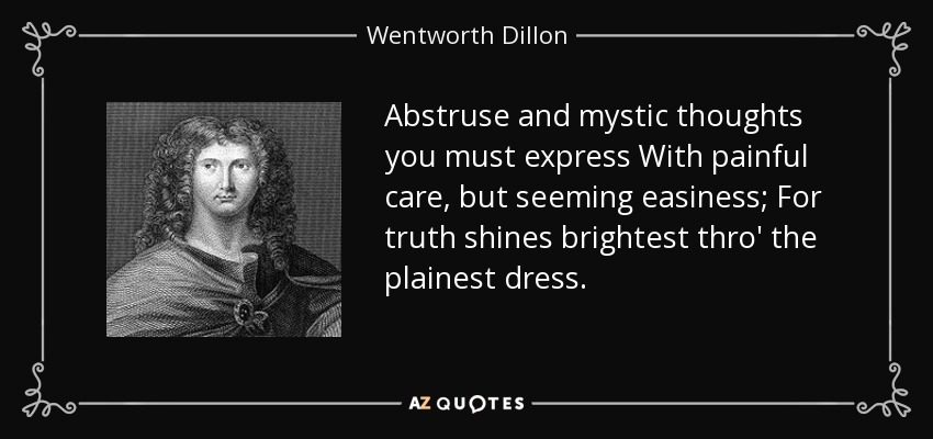 Abstruse and mystic thoughts you must express With painful care, but seeming easiness; For truth shines brightest thro' the plainest dress.