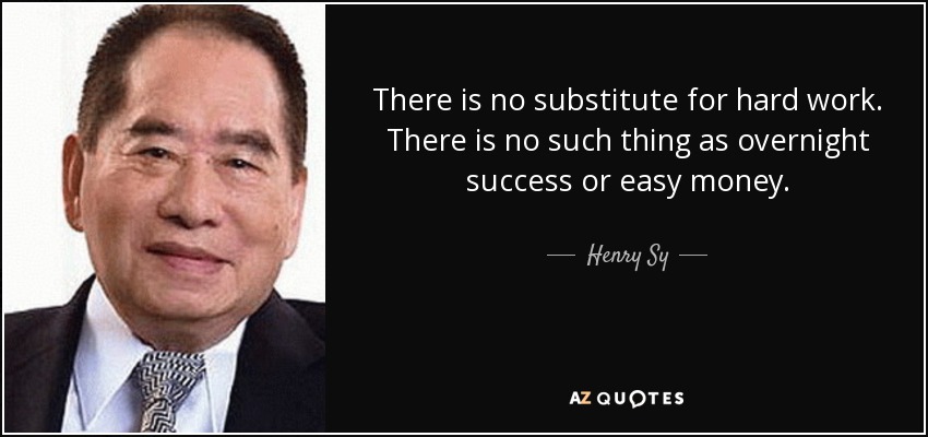 There is no substitute for hard work. There is no such thing as overnight success or easy money.