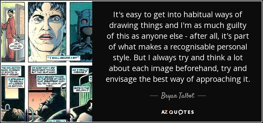 It's easy to get into habitual ways of drawing things and I'm as much guilty of this as anyone else - after all, it's part of what makes a recognisable personal style. But I always try and think a lot about each image beforehand, try and envisage the best way of approaching it.