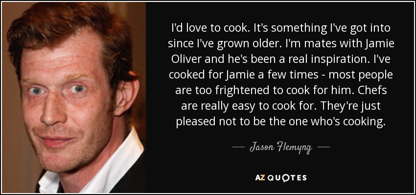 I'd love to cook. It's something I've got into since I've grown older. I'm mates with Jamie Oliver and he's been a real inspiration. I've cooked for Jamie a few times - most people are too frightened to cook for him. Chefs are really easy to cook for. They're just pleased not to be the one who's cooking.