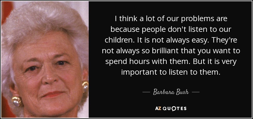I think a lot of our problems are because people don't listen to our children. It is not always easy. They're not always so brilliant that you want to spend hours with them. But it is very important to listen to them.