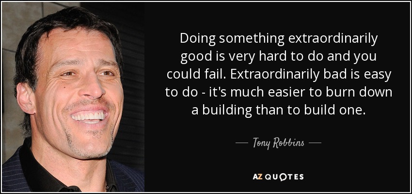 Doing something extraordinarily good is very hard to do and you could fail. Extraordinarily bad is easy to do - it's much easier to burn down a building than to build one.