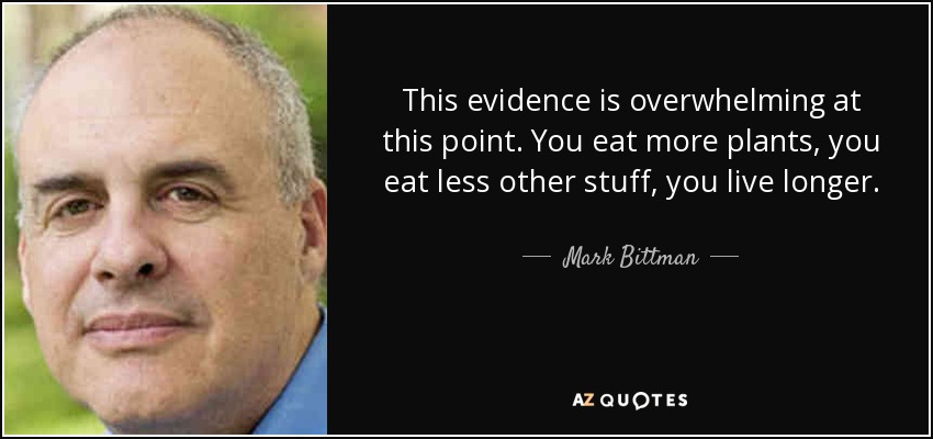 This evidence is overwhelming at this point. You eat more plants, you eat less other stuff, you live longer.