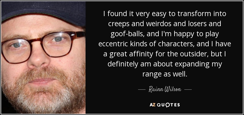I found it very easy to transform into creeps and weirdos and losers and goof-balls, and I'm happy to play eccentric kinds of characters, and I have a great affinity for the outsider, but I definitely am about expanding my range as well.