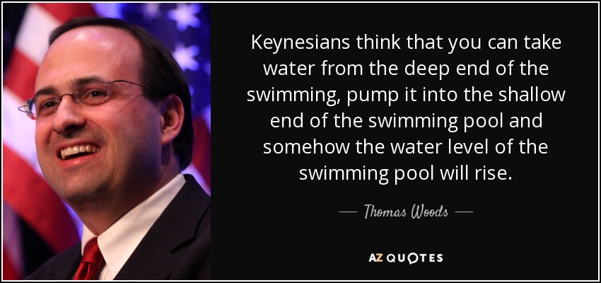 Keynesians think that you can take water from the deep end of the swimming, pump it into the shallow end of the swimming pool and somehow the water level of the swimming pool will rise.