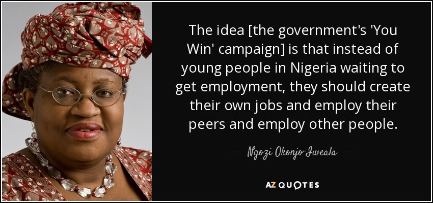 The idea [the government's 'You Win' campaign] is that instead of young people in Nigeria waiting to get employment, they should create their own jobs and employ their peers and employ other people.