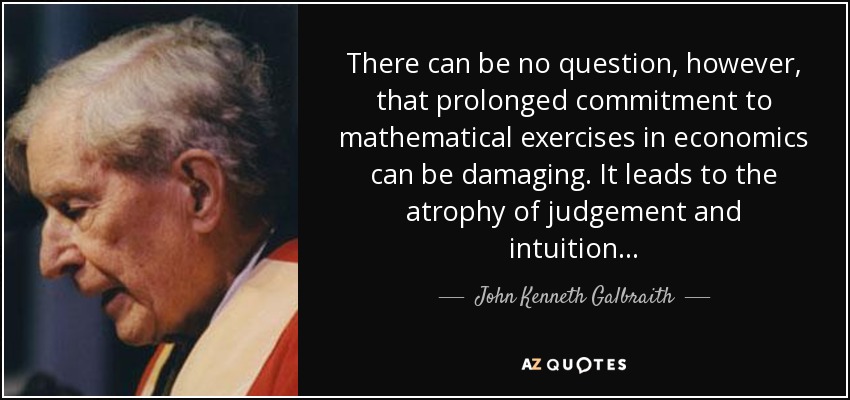 There can be no question, however, that prolonged commitment to mathematical exercises in economics can be damaging. It leads to the atrophy of judgement and intuition. . .