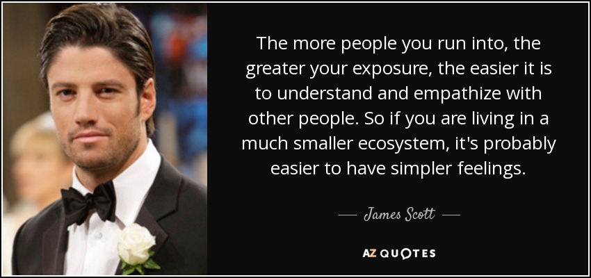 The more people you run into, the greater your exposure, the easier it is to understand and empathize with other people. So if you are living in a much smaller ecosystem, it's probably easier to have simpler feelings.