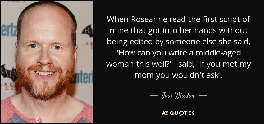 When Roseanne read the first script of mine that got into her hands without being edited by someone else she said, 'How can you write a middle-aged woman this well?' I said, 'If you met my mom you wouldn't ask'.