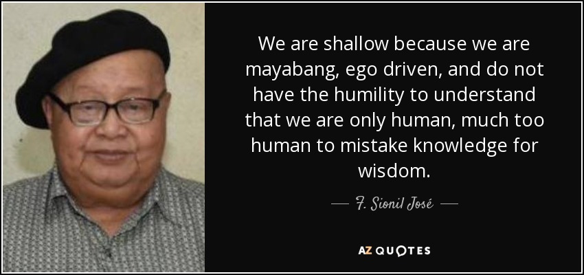 We are shallow because we are mayabang, ego driven, and do not have the humility to understand that we are only human, much too human to mistake knowledge for wisdom.
