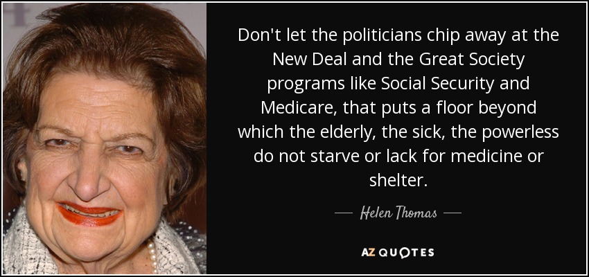 Don't let the politicians chip away at the New Deal and the Great Society programs like Social Security and Medicare, that puts a floor beyond which the elderly, the sick, the powerless do not starve or lack for medicine or shelter.