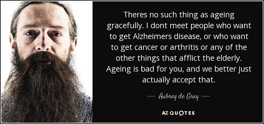 Theres no such thing as ageing gracefully. I dont meet people who want to get Alzheimers disease, or who want to get cancer or arthritis or any of the other things that afflict the elderly. Ageing is bad for you, and we better just actually accept that.