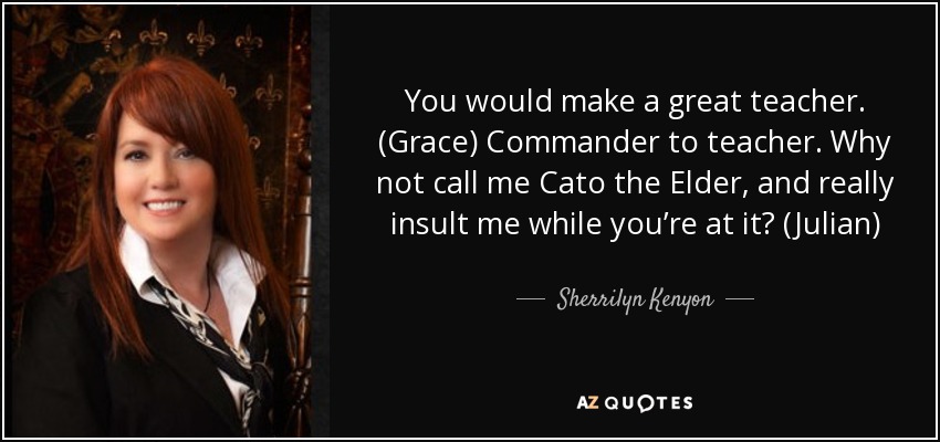 You would make a great teacher. (Grace) Commander to teacher. Why not call me Cato the Elder, and really insult me while you’re at it? (Julian)