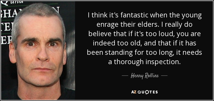 I think it's fantastic when the young enrage their elders. I really do believe that if it's too loud, you are indeed too old, and that if it has been standing for too long, it needs a thorough inspection.