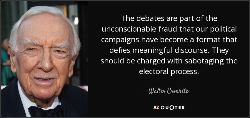 The debates are part of the unconscionable fraud that our political campaigns have become a format that defies meaningful discourse. They should be charged with sabotaging the electoral process.