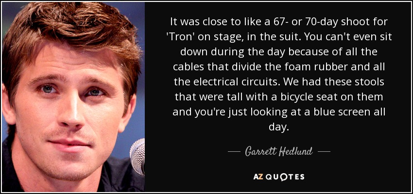 It was close to like a 67- or 70-day shoot for 'Tron' on stage, in the suit. You can't even sit down during the day because of all the cables that divide the foam rubber and all the electrical circuits. We had these stools that were tall with a bicycle seat on them and you're just looking at a blue screen all day.