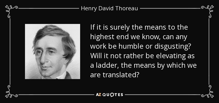 If it is surely the means to the highest end we know, can any work be humble or disgusting? Will it not rather be elevating as a ladder, the means by which we are translated?