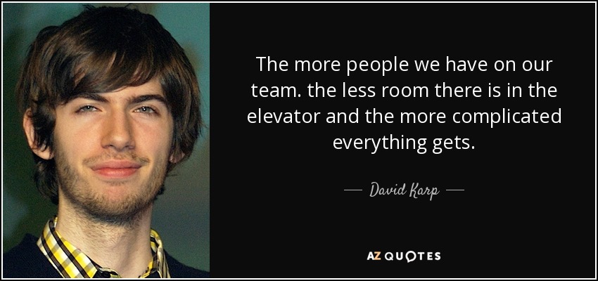 The more people we have on our team. the less room there is in the elevator and the more complicated everything gets.