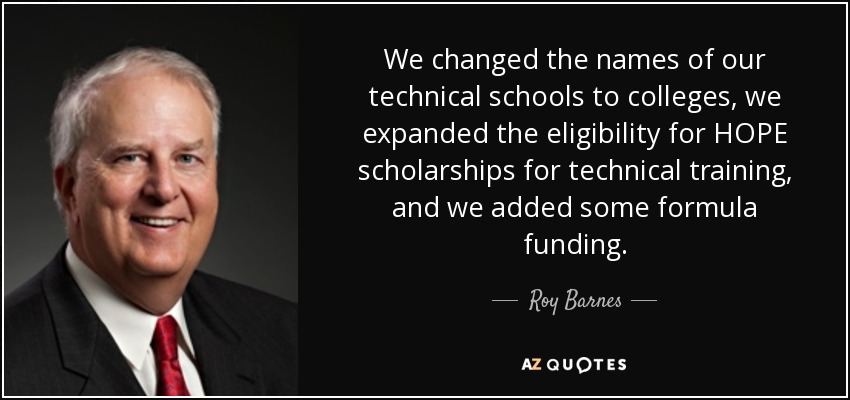 We changed the names of our technical schools to colleges, we expanded the eligibility for HOPE scholarships for technical training, and we added some formula funding.