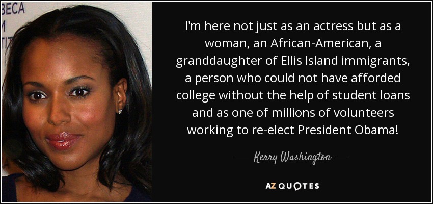 I'm here not just as an actress but as a woman, an African-American, a granddaughter of Ellis Island immigrants, a person who could not have afforded college without the help of student loans and as one of millions of volunteers working to re-elect President Obama!