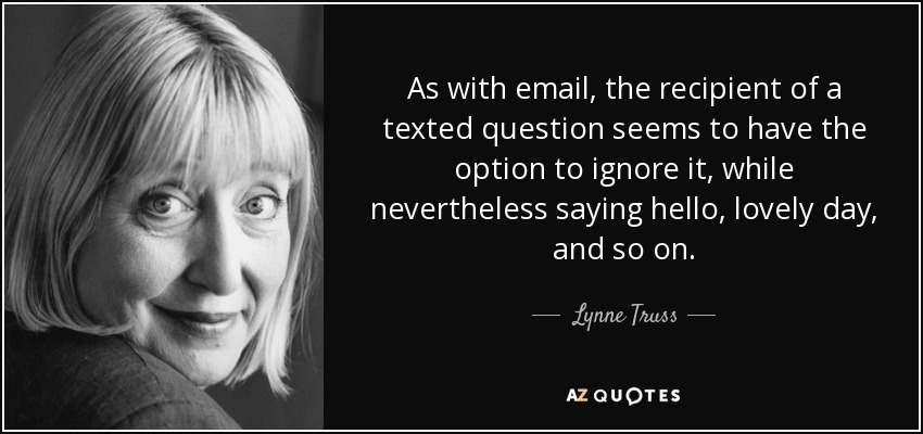 As with email, the recipient of a texted question seems to have the option to ignore it, while nevertheless saying hello, lovely day, and so on.