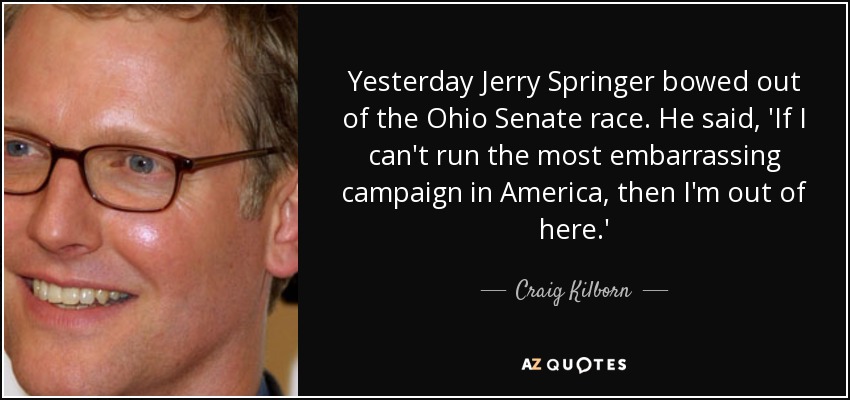 Yesterday Jerry Springer bowed out of the Ohio Senate race. He said, 'If I can't run the most embarrassing campaign in America, then I'm out of here.'