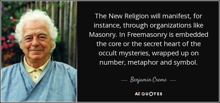 The New Religion will manifest, for instance, through organizations like Masonry. In Freemasonry is embedded the core or the secret heart of the occult mysteries, wrapped up on number, metaphor and symbol.