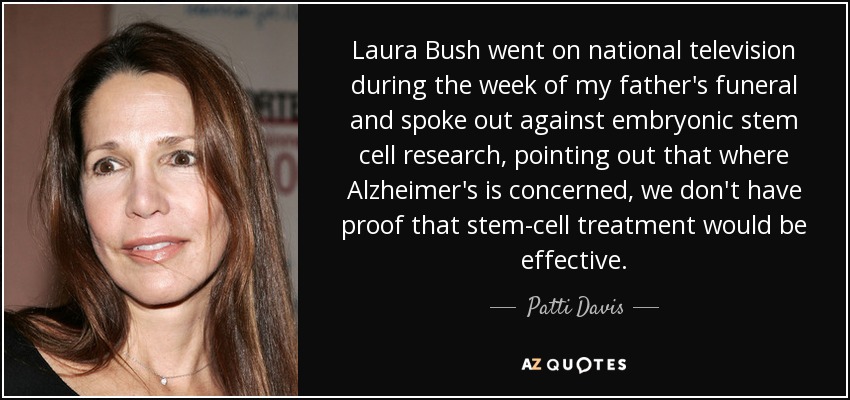 Laura Bush went on national television during the week of my father's funeral and spoke out against embryonic stem cell research, pointing out that where Alzheimer's is concerned, we don't have proof that stem-cell treatment would be effective.